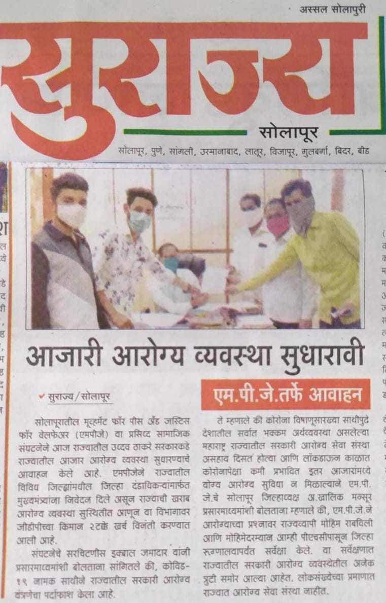के इलाज के लिए निजी अस्पतालों ने मनमाना पैसा वसूल किया  है. इसलिए एम पी जे ने प्रदेश सरकार से स्वास्थ्य