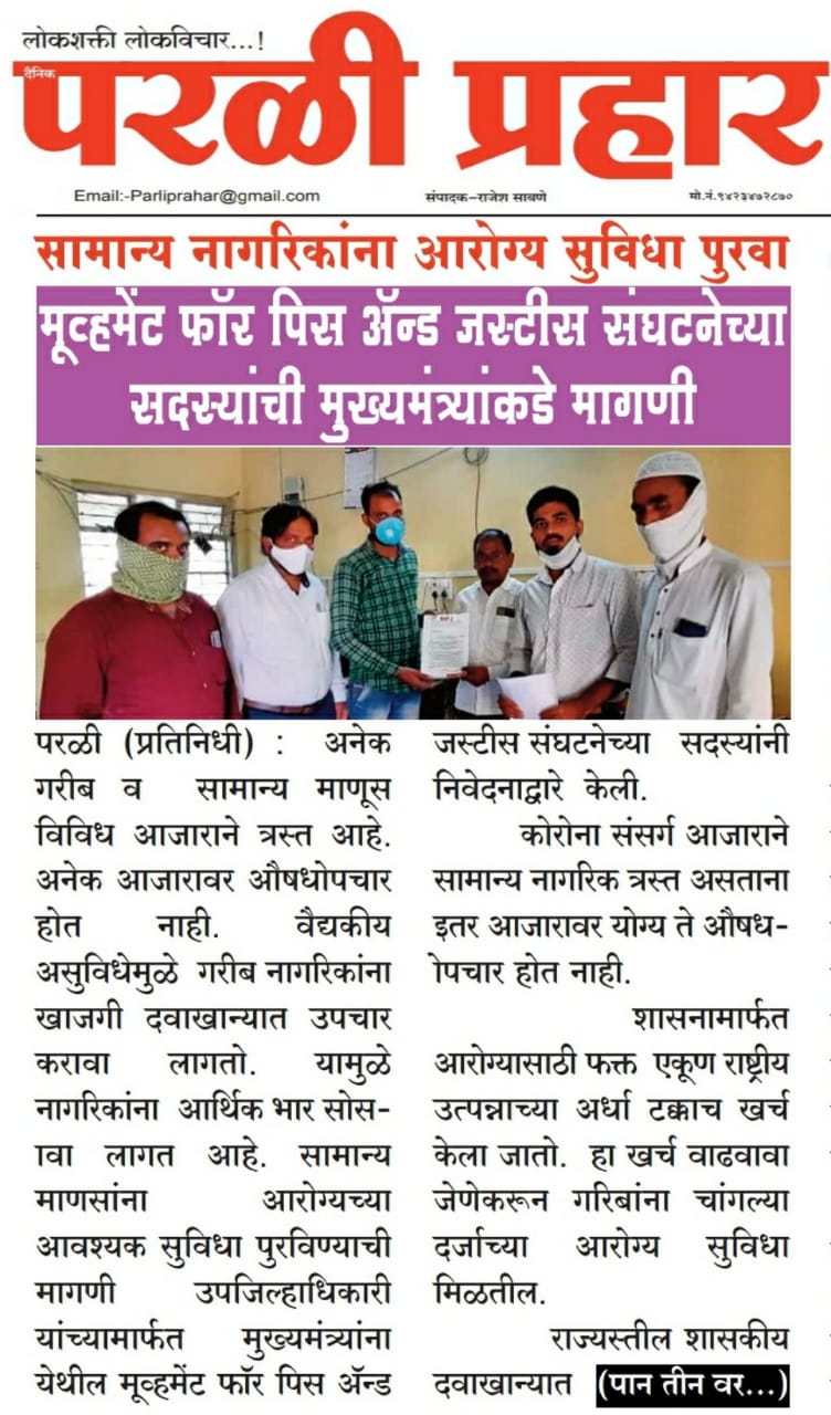 फ़ॉर वेलफेयर (एम पी जे) ने आज महाराष्ट्र