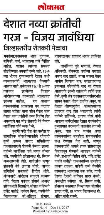 मानी जन आन्दोलन मूव्मेंट फॉर पीस एंड जस्टिस फॉर वेलफेयर ने 10 दिसम्बर को अकोला