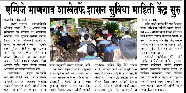 मुद्दे पर कार्य करेगी. साथ ही लोगों की सहायता के लिए एमपीजे ने मानगाँव में एक इन्फार्मेशन